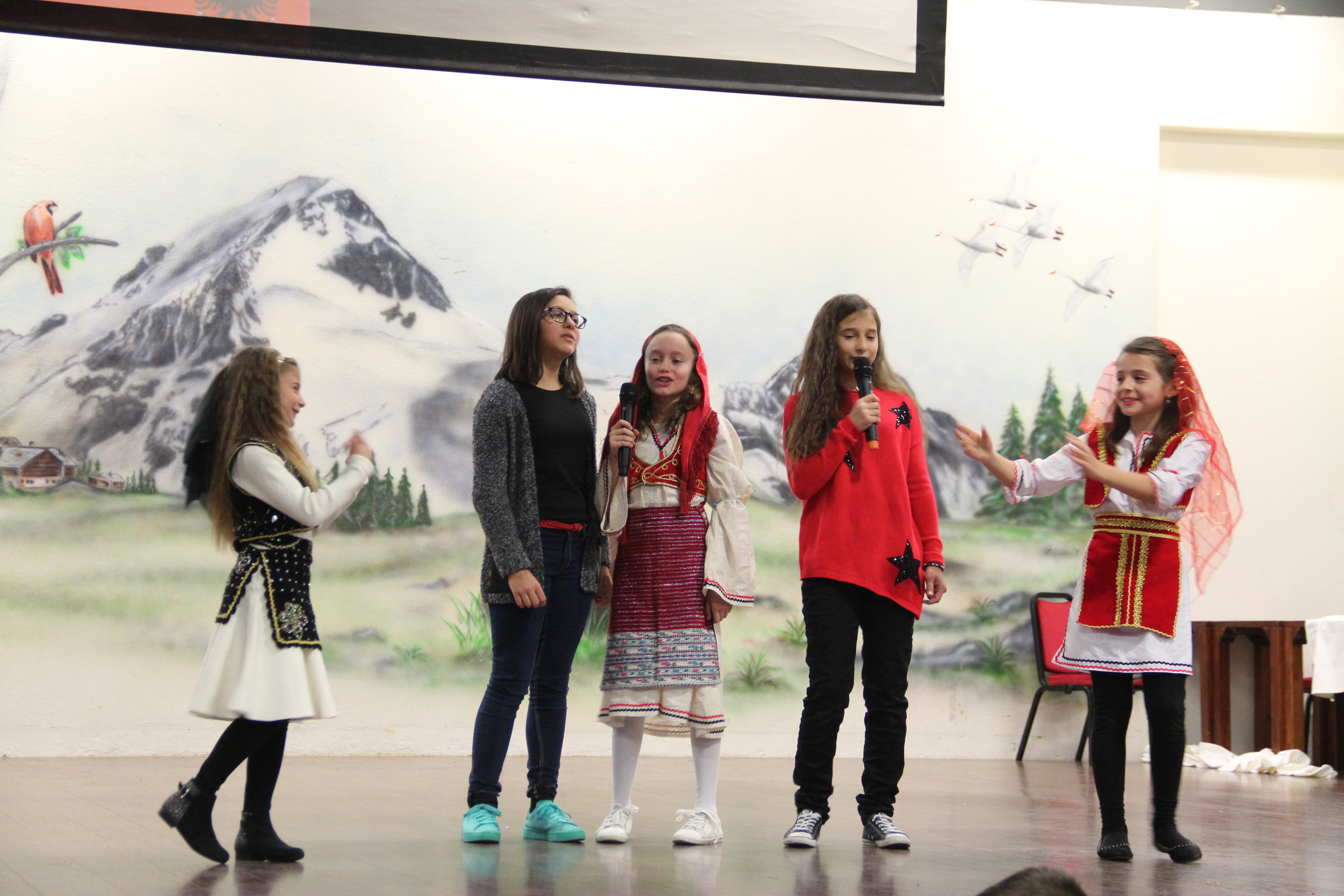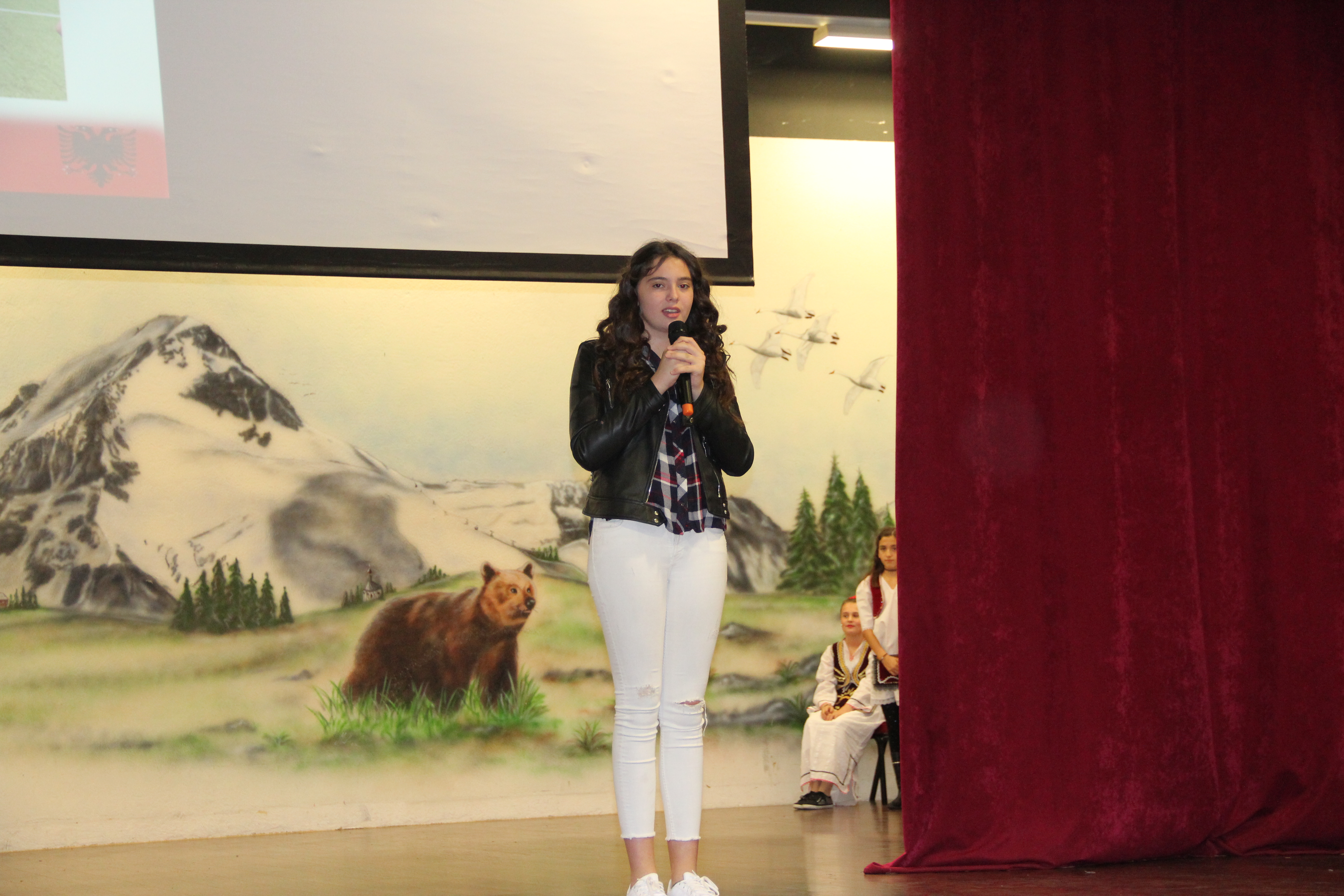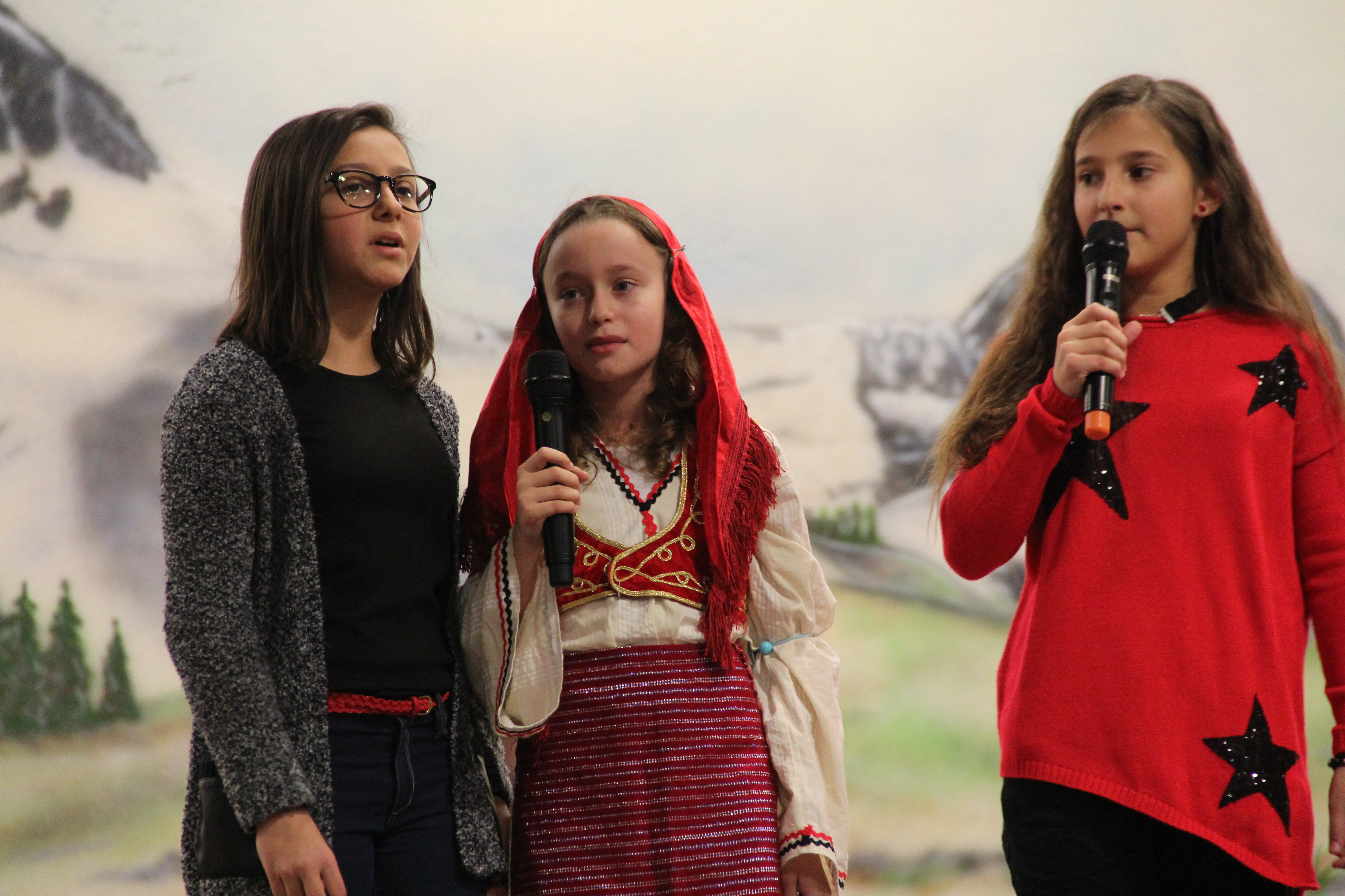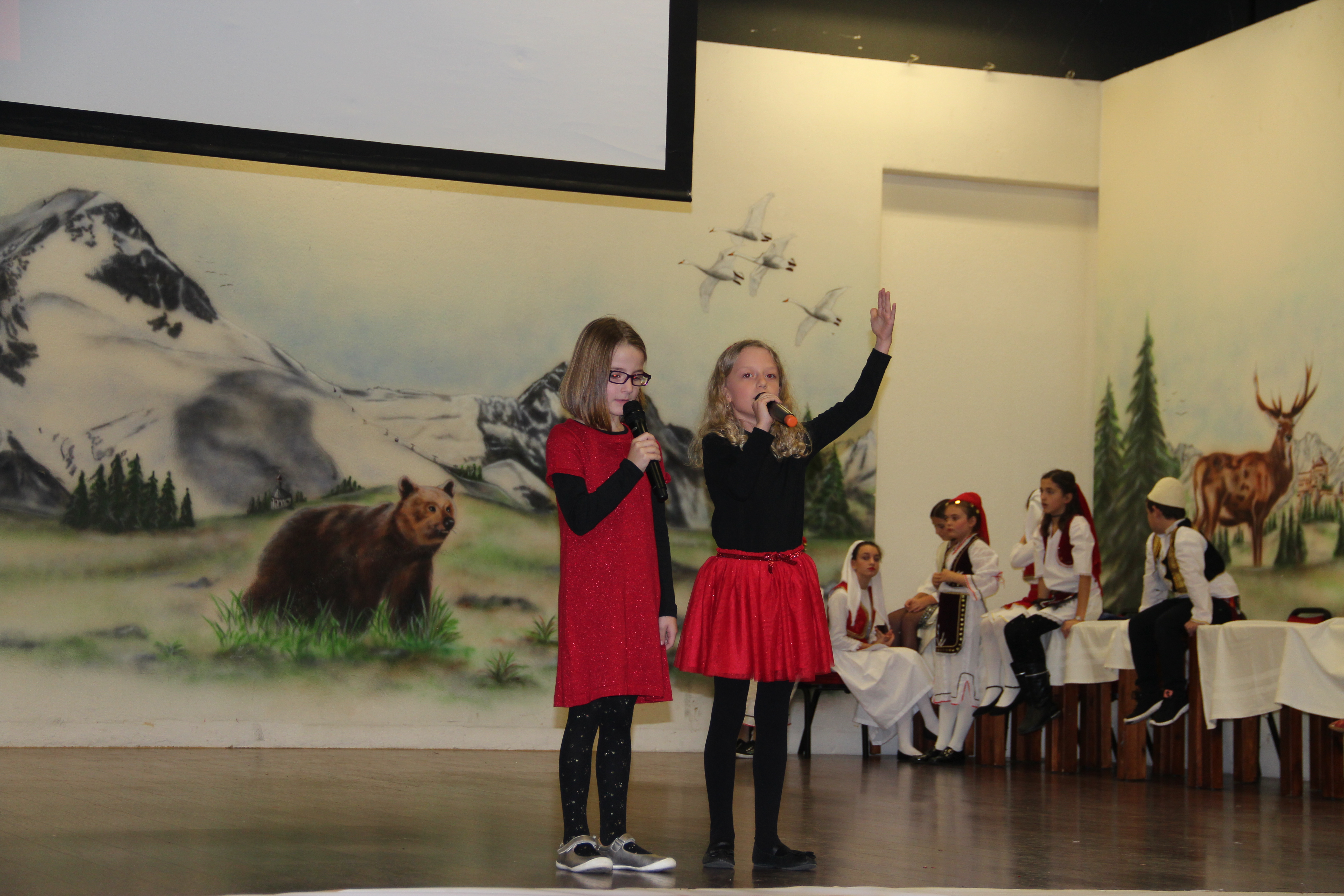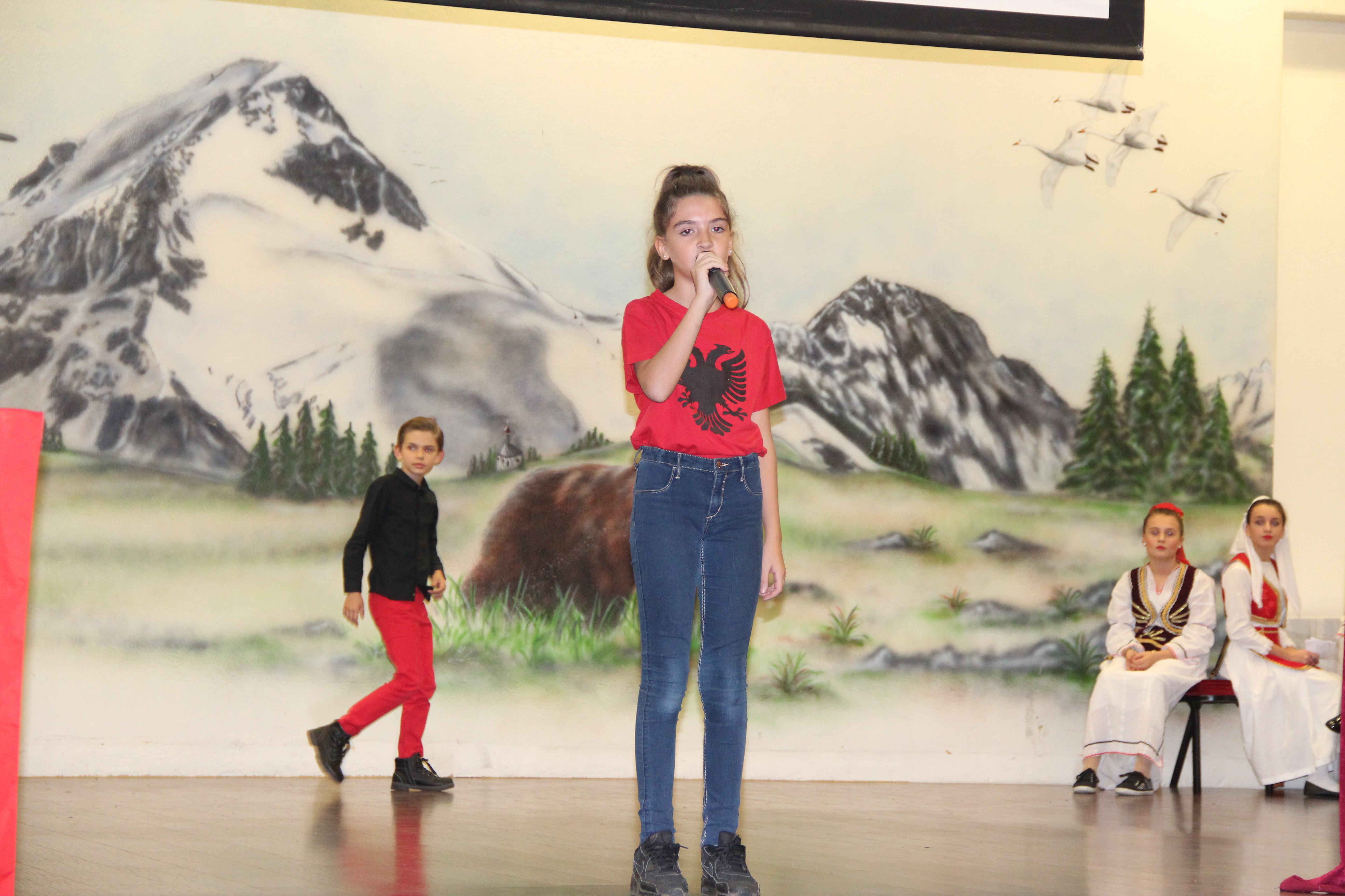 Në fillim në skenë u ngjiten fëmijët e shkollave shqipe për të intonuar himnin e flamurit kombëtar, nën dirigjimin e mësuesit Hasan Spahiu.