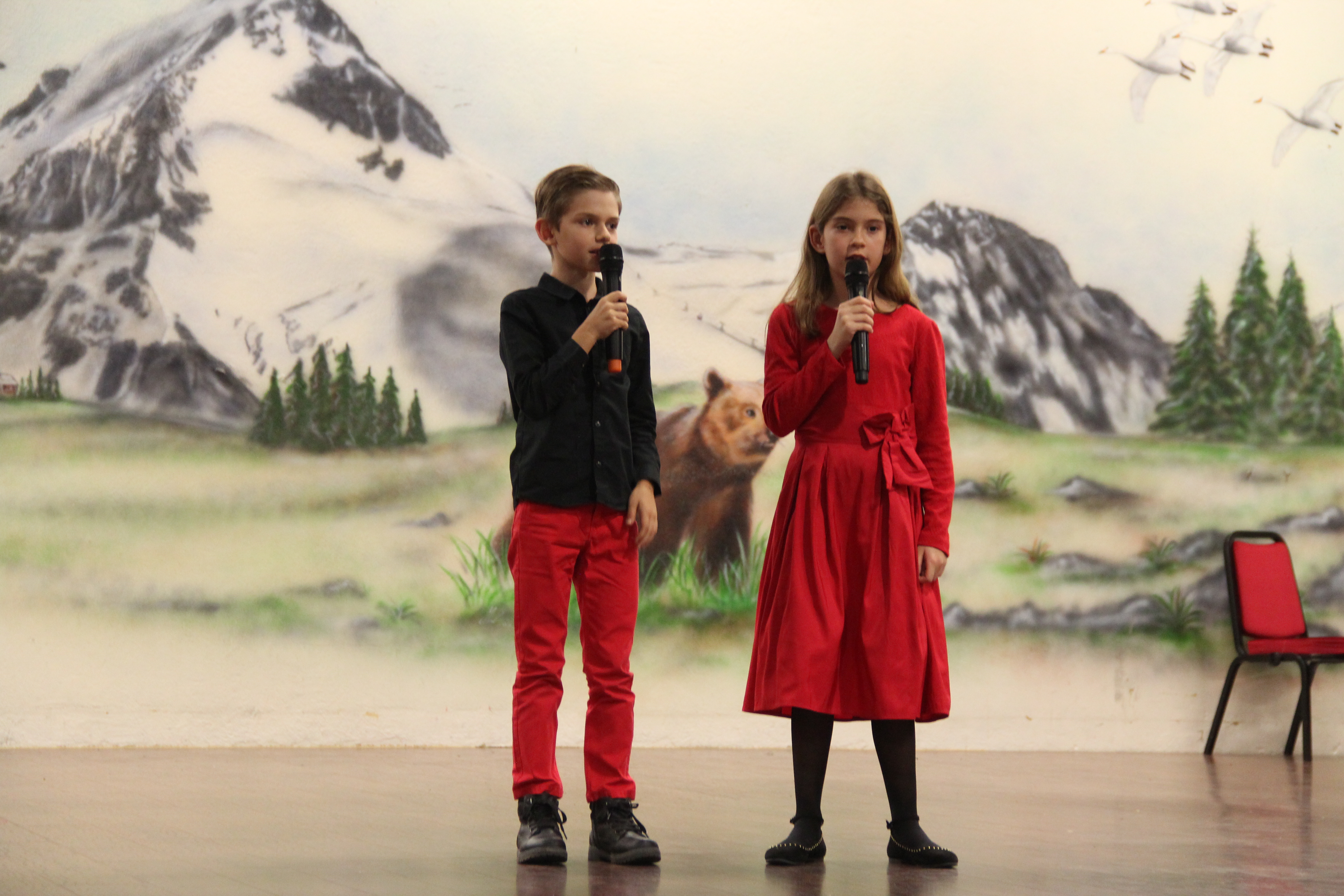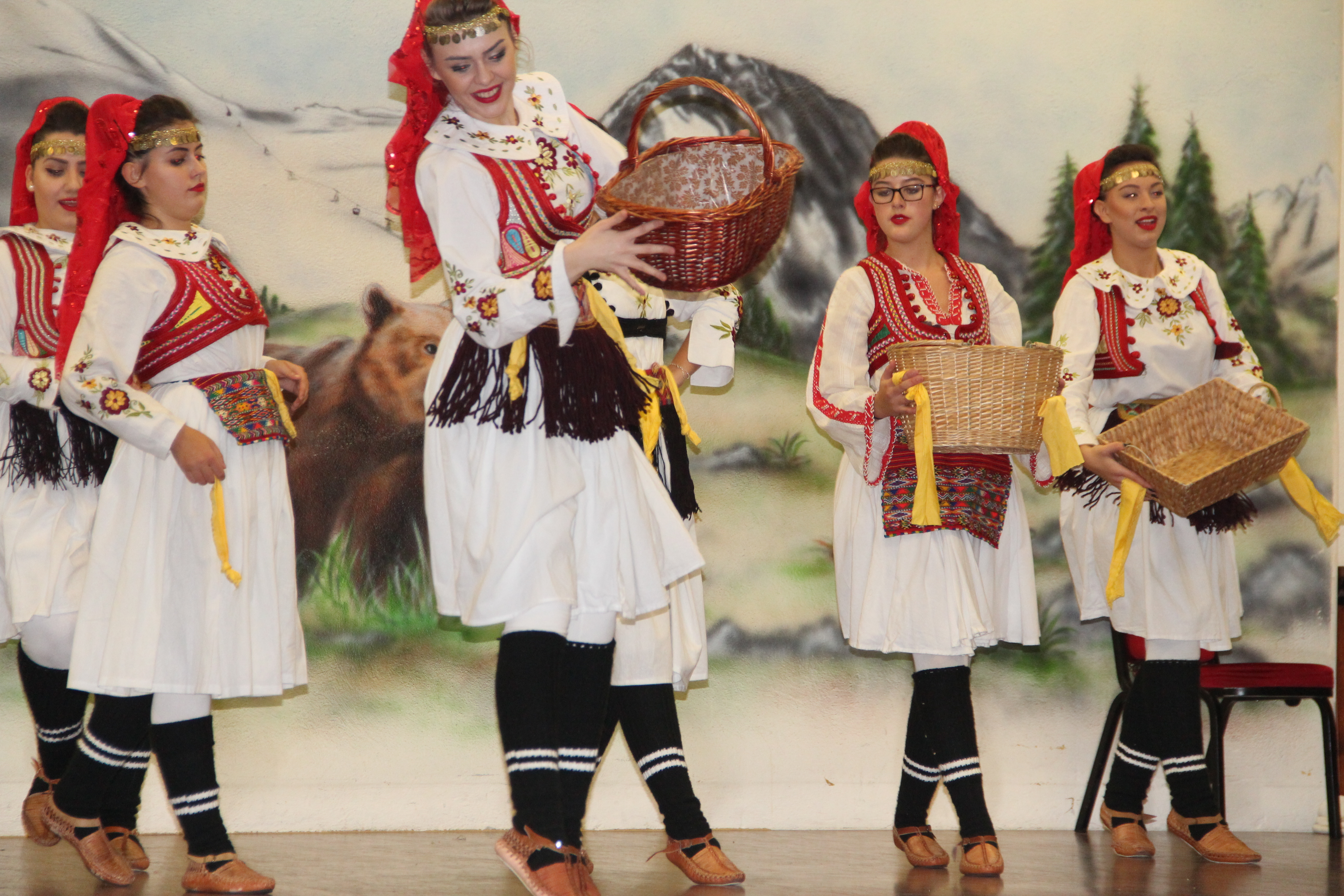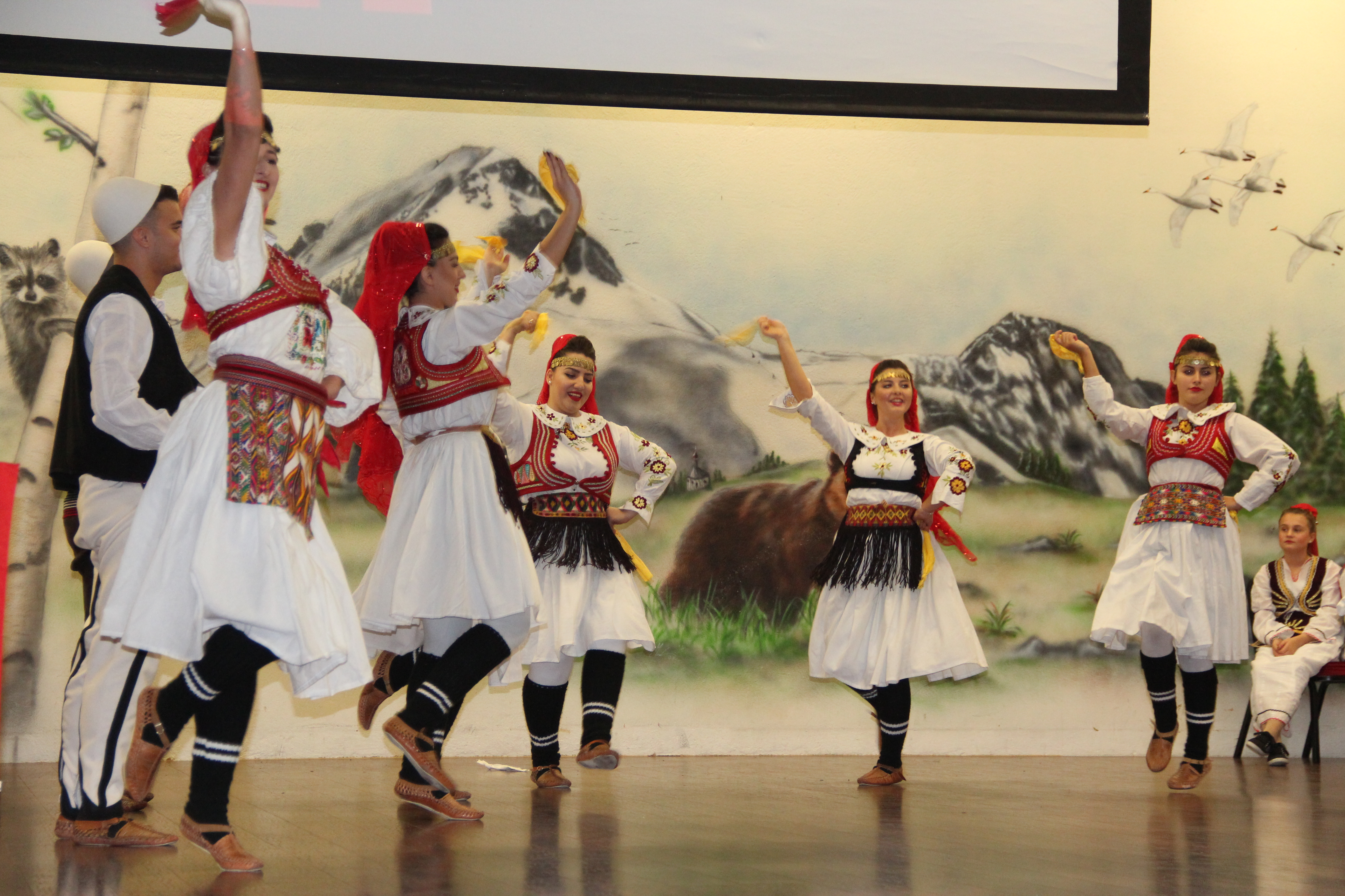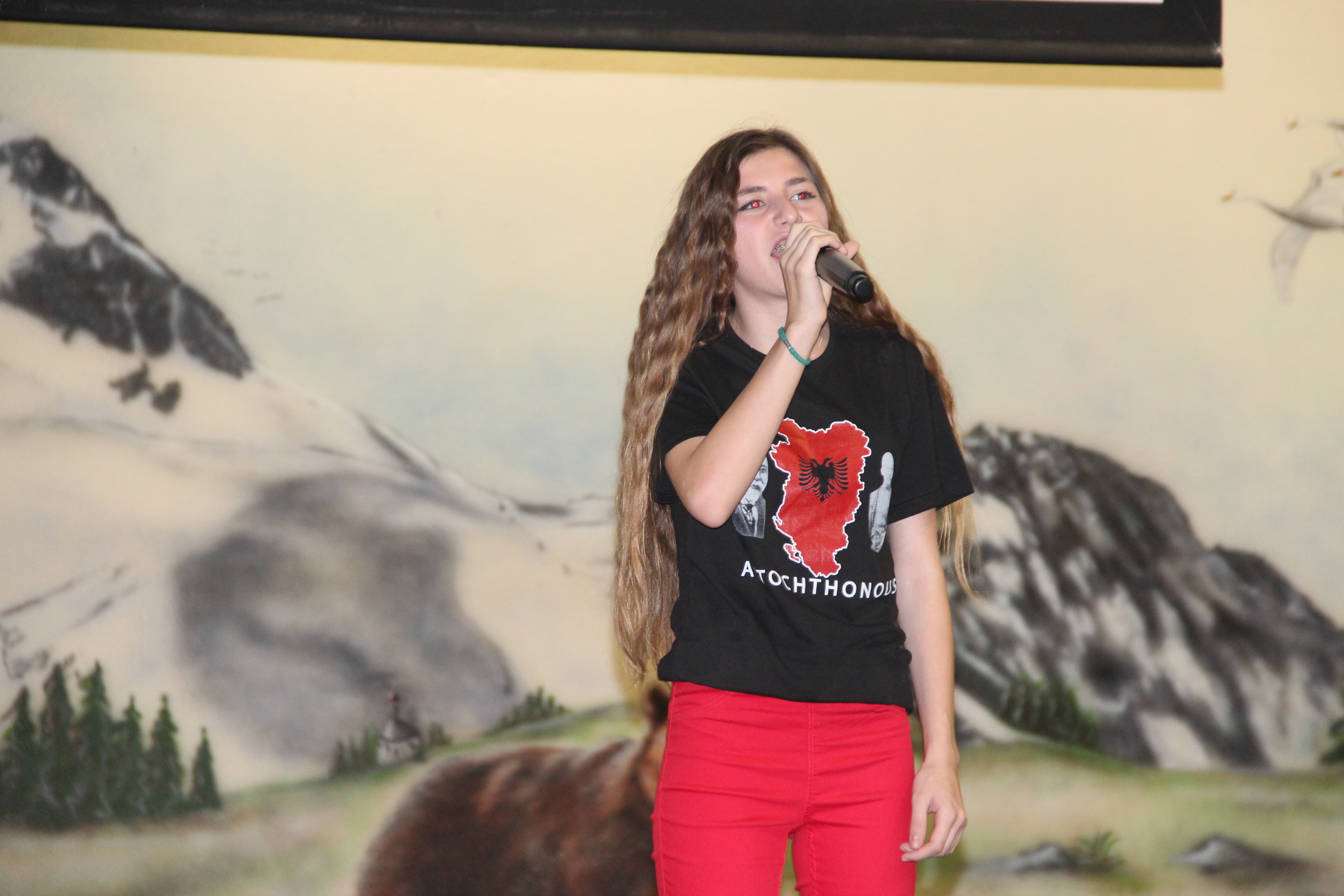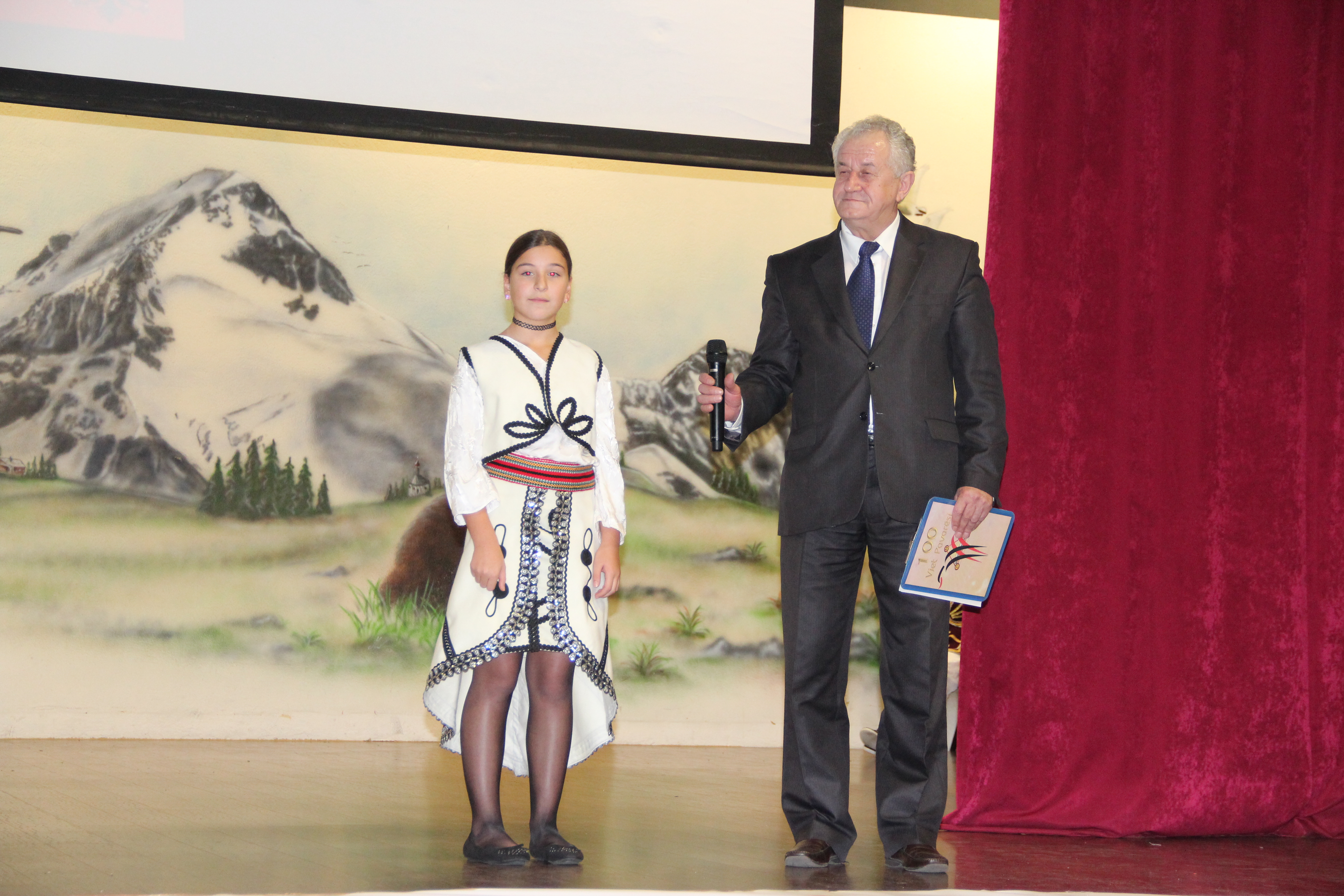 Në fillim në skenë u ngjiten fëmijët e shkollave shqipe për të intonuar himnin e flamurit kombëtar, nën dirigjimin e mësuesit Hasan Spahiu.