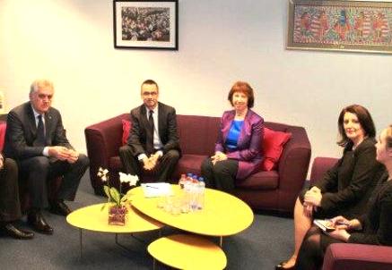 Nën sqetullat e të ngarkuarës për politikë të jashtme të Bashkësisë Evropiane, Catherina Ashton, të mërkurën në Bruksel u takuan presidenti serb, Tomislav Nikolic, dhe homologia e tij, Atifete Jahjaga. Është takimi i parë që nga koha kur Kosova në shkurt të vitit 2008 shpalli pavarësinë edhe përkundër rezistencës së Serbisë. Takimi pati kryesisht karakter simbolik.