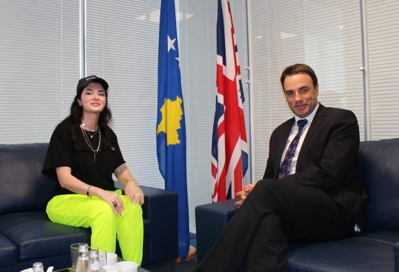 Këngëtarja shqiptare me famë ndërkombëtare, Era Istrefi gjatë ditës së sotme është pritur në takim nga ambasadori britanik, Ruari O’Connell.