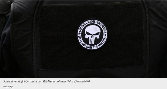 Siç raporton “Bild”, mbishkrimi mund të porositet edhe online, ku porositet nga mercenarë. Një zëdhënës i Ministrisë së Brendshme të NRw e ka konfirmuar veprimin: “Këto gjëra nuk kanë vend në uniformën e shërbimit. Ai është dashur ta largojë menjëherë nga helmeta e tij dhe është suspenduar deri në një njoftim tjetër.