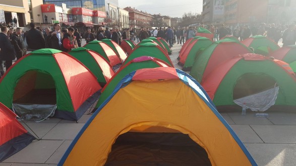 Pas protestave në rrugë dhe rebelimit brenda Kuvendit, partitë opozitare në Kosovë kanë zgjedhë një mënyrë tjetër të protestimit. Përfaqësuesit e opozitës kanë ndërtuar disa tenda në sheshin “Skënderbeu” në Prishtinë, ku do të qëndrojnë, siç kanë thënë ata, “ditë e natë” deri në rrëzimin e Qeverisë së Kosovës.