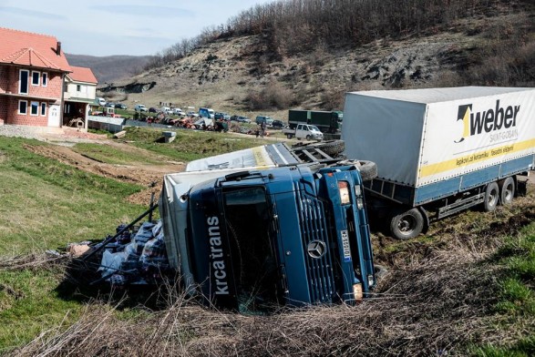 Të revoltuar me vendimin e Qeverisë së Serbisë, e cila ktheu mbara në Kosovë një konvojë me libra shqip, aktivistët e Vetëvendosjes përmbysen një kamion me produkte serbe
