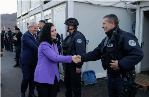 Presidentja e Republikës së Kosovës, Vjosa Osmani ka qëndruar në pikën kufitare në Bërnjak dhe ka vizituar gjithashtu edhe bazën policore në Jasenovik dhe kampin Belvedere.