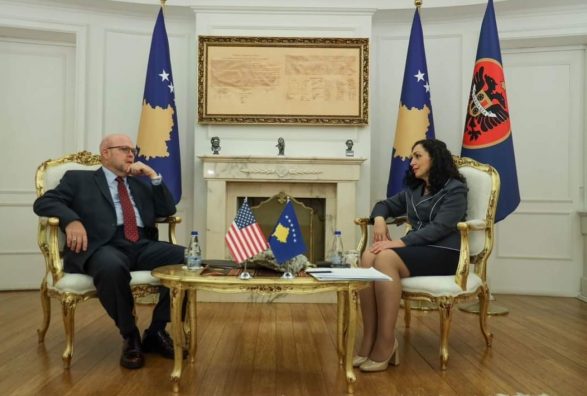 Presidentja e Kosovës, Vjosa Osmani, në takimin që zhvilloi sot me Ambasadorin e SHBA-së në Kosovë, Jeffrey Hovenier, diskutoi për sulmin terrorist në veri të Kosovës.