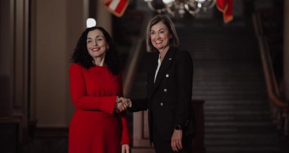 Presidentja e Kosovës, Vjosa Osmani, është pritur me ceremoni zyrtare nga Guverantorja e Iowa-s, Kim Reynolds, përcjell albinfo.ch.