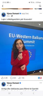 Presidentja e Kosovës, Vjosa Osmani, ka bërë të ditur nga Brukseli se Bashkimi Evropian ka marrë vendim për heqjen e plotë të masave ndaj Kosovës. Ajo njoftoi se vendimi është marrë në përfundim të samitit BE–Ballkani Perëndimor që u mbajt sonte në Bruksel.