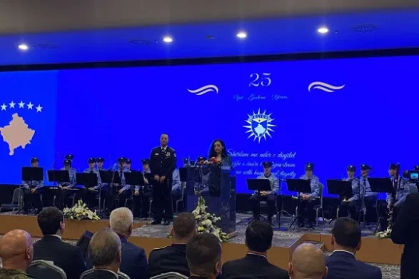 Presidentja e Kosovës, Vjosa Osmani, tha se Policia e Kosovës gjatë këtij çerekshekulli vazhdon të jetë një nga institucionet më të besuara dhe të respektuara, duke qenë në krye në ndërtimin e një shoqërie, ku mbizotëron rendi dhe ligji.
