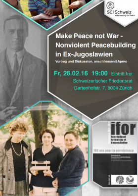 “Make Peace, not War” është një aktivitet përcjellës në kuadrin e ekspozitës “100 Jahre für Gewaltfreiheit”, me rastin e jubileut 100 vjeçar të Federatës Ndërkombëtare të Pajtimit IFOR Zvicër.