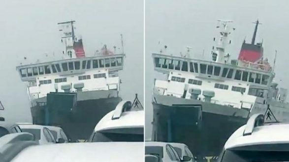 Sipas medieve të huaja, përcjell Telegrafi, pamjet tregojnë se si trageti CalMac u “shkund” nga erërat 80 km/h në mëngjes, ndërsa u përpoq të gjente portin në Androssan Harbour, Skoci, të premten.