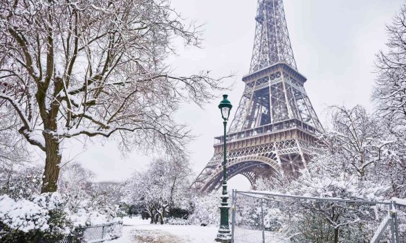 Pamjet mahnitëse nga Parisi, i zbardhur nga bora