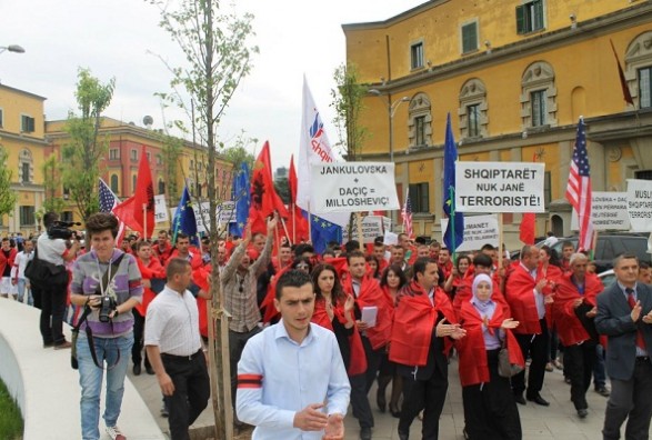 Para ambasadës së Serbisë në Tiranë u protestua sot në shenjë solidariteti ndaj shqiptarëve të Preshevës dhe të Maqedonisë. Në mbështetje të protestës ka marrë pjesë dhe kryetari i Preshevës, Ragmi Mustafa. Qindra qytetarë marshuan në rrugët e kryeqytetit duke lëshuar thirrje patriotike në mbështetje të vëllezërve shqiptarë të Preshevës të cilët ndër vite janë vënë përpara dhunës verbale dhe fizike më ngjyrime politiko-ksenofobe të strukturave serbe.