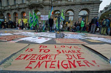 Rreth 1000 veta kishin pushtuar sheshin “Paradeplatz”, ku gjenden selitë e dy bankave më të mëdha zvicerane UBS dhe Credit Suisse. Ata po i bashkoheshin kështu lëvizjes më të re kundër “pushtetit monopolist të bankave”, të filluar në Nju Jork me moton “Occupy Wall Street”.