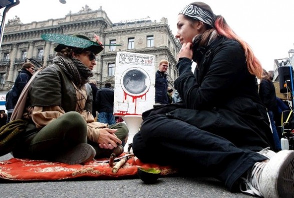 Një grup aktivistësh, të cilët, sipas shembullit të Nju Jorkut po e zhvillojnë aktivitetin e tyre edhe në Cyrih me moton “Occupy paradeplatz” (“Pushtoje Paradeplatz-in”) kanë vendosur mbrëmë që ta kalojnë edhe natën e dytë nën qiell të hapur.