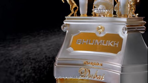 Shishja e stërmadhe qëndron në një mbështjellëse lëkure gati dy metra të lartë. Krijuesit e parfumit thonë se ai ka përbërës që vijnë nga pjesë të ndryshme të botës, duke përfshirë drurin e sandalit, një lloj trëndafili turk, e një erëzë të veçantë indiane, ndërsa kafshët e paraqitura aty tregojnë historinë e Dubait, përcjell albinfo.ch.