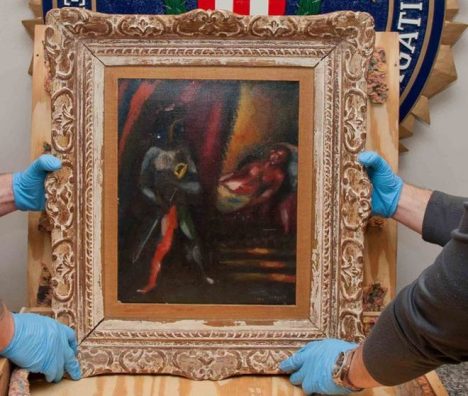 Një pikturë e Marc Chagall e vjedhur në New York e vjedhur 30 vite më parë është gjetur nga FBI-ja dhe pritet që tu kthehet trashëgimtarëve. Piktura që e mban titullin “Otello dhe Dosdemona”, është mbajtur e fshehur në një depo në Marylan, njofton FBI.