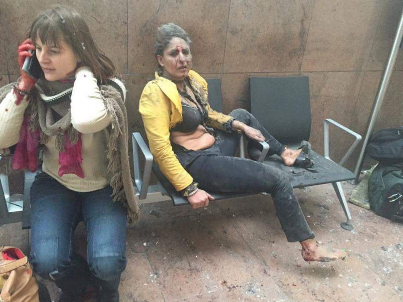 Një dëshmitar, përcjell albinfo.ch, i thirrur nga gazeta RTBF, tregon se kishte parë disa njerëz të plagosur si dhe njerëz të cilëve u kishte rënë të fikët në sallën e nisjes përballë “Hotel Sheraton”.