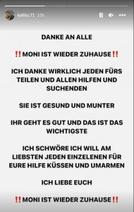 Të afërmit kanë njoftuar se ajo është shëndosh e mirë dhe është kthyer në shtëpi, duke falënderuar njerëzit që u angazhuan për të ofruar ndihmë, përcjell albinfo.ch.