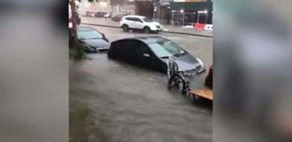 Temperaturat e larta të ditëve të fundit që arritën deri 40 gradë celsius, u lanë vend stuhive të shiut që përmbytën Nju-Jorkun.