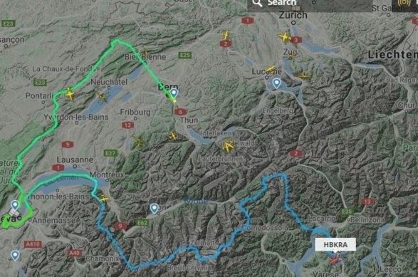 Aeroplani privat është ngritur nga Berna të dielën pasdite dhe aktualisht po fluturon, duke u përpjekur që fluturimin ta bëjë sa më saktësisht përgjatë kufijve të Zvicrës, shkruan tagesanzeiger.ch. Piloti me avionin etij tashmë është regjistruar nga Flightradar24.