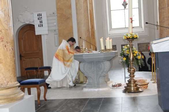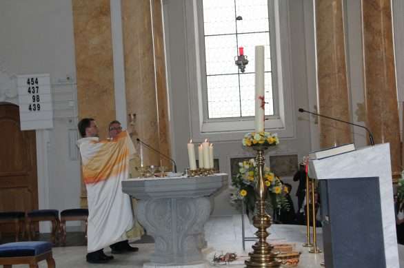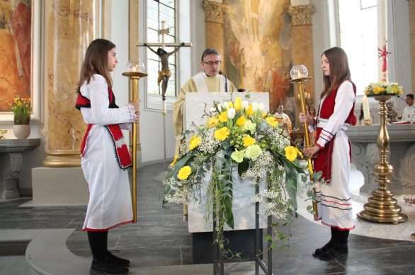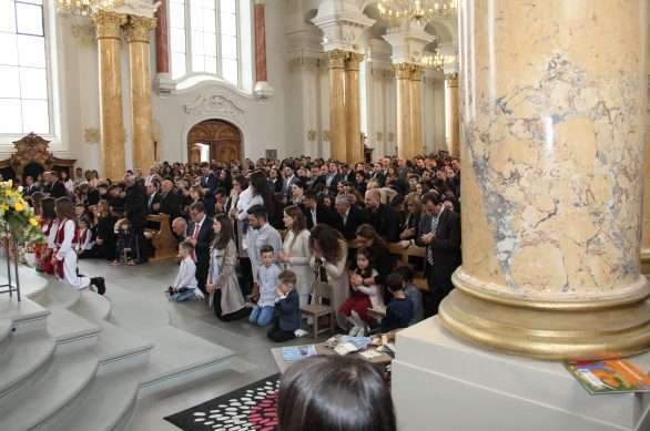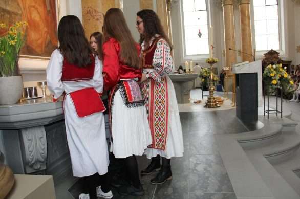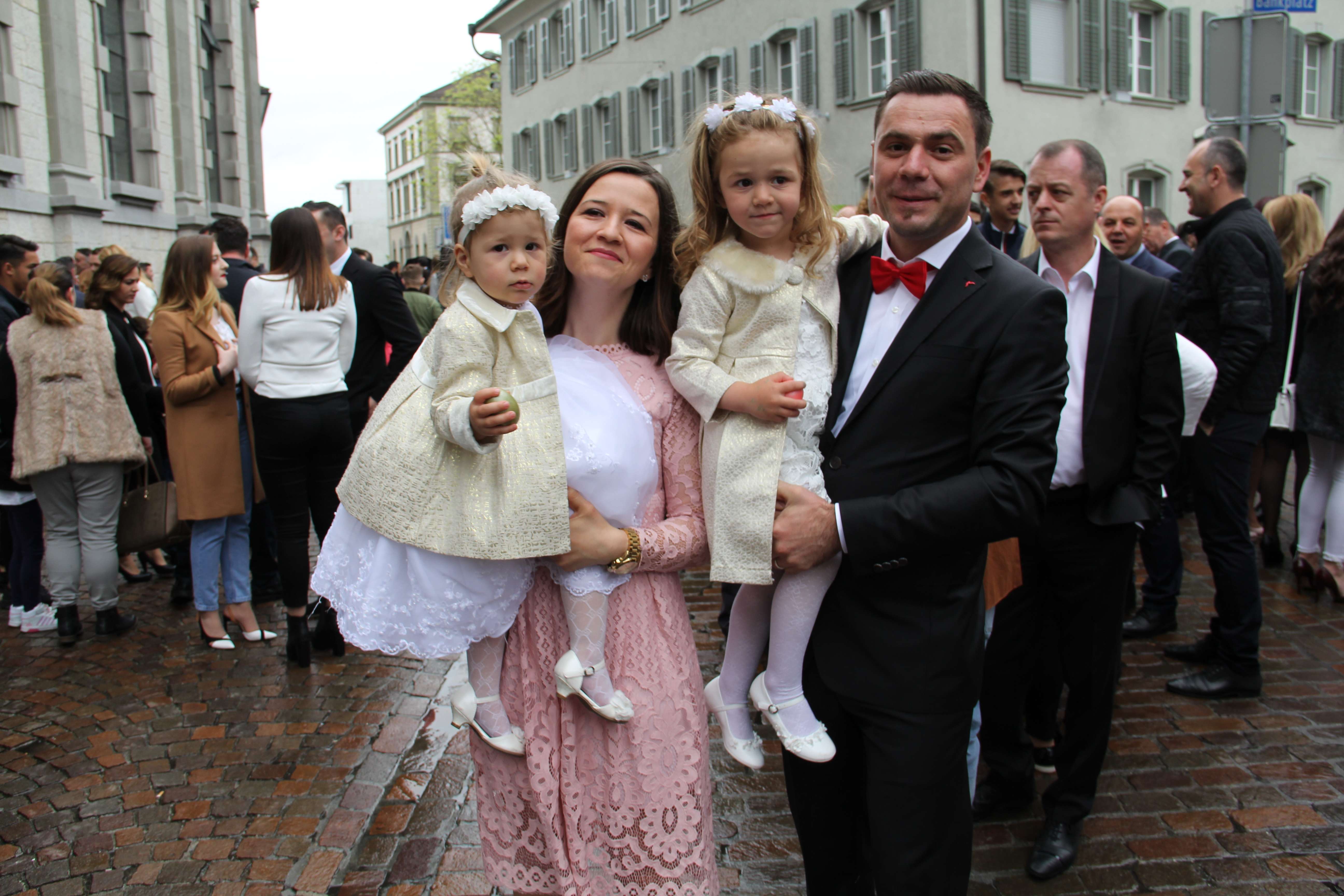 Augustin Bekaj me të shoqen, Klaudia dhe dy vajzat Simona dhe Noela janë veshur “si për festë” dhe shkëlqejnë nga entuziazmi. Në fakt Pashkët, për kremtimin e të cilave ata kanë ardhur në kishë, në Frauenfeld, edhe është festa më e madhe e krishterimit.