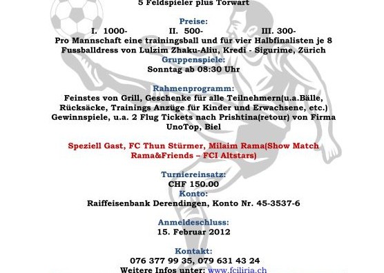 Pro Mannschaft eine trainingsball und für vier Halbfinalisten je 8 Fussballdress von Lulzim Zhaku-Aliu, Kredi – Sigurime, Zürich