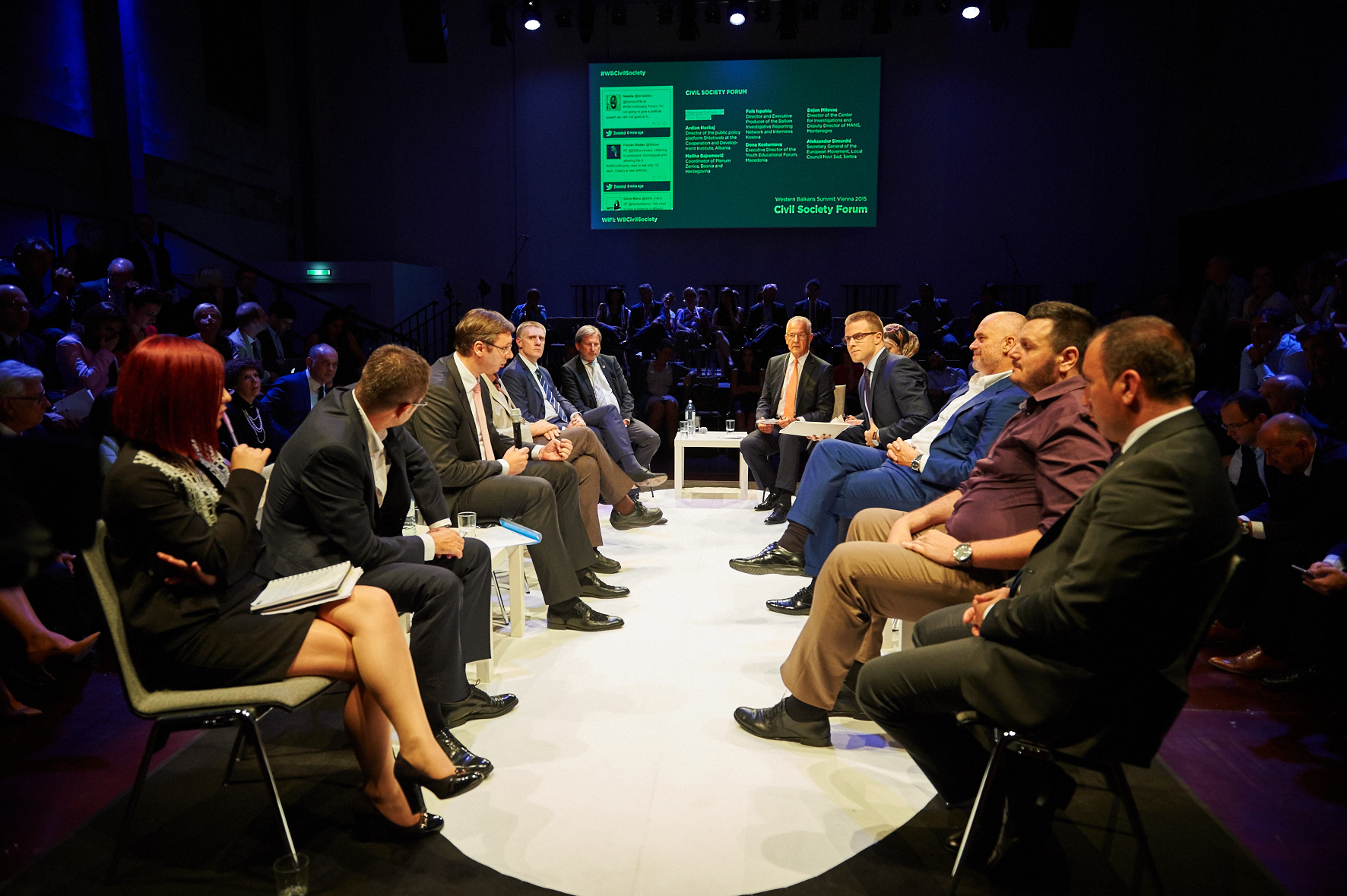 Forumi i Shoqërisë Civile u mbajt më 26 gusht në ambientet e Ankerbrotfabrik në Vjenë. Gjashtë përfaqësuesit e zgjedhur të shoqërisë civile nga vendet e Ballkanit Perëndimor morën pjesë në debatin me gjashtë liderët politikë, duke kërkuar zgjidhje për temat themelore të tubimit – forcimi i bashkëpunimit rajonal, sigurimi i lirisë së shprehjes, hapja e vendeve të punës dhe një perspektiv e qartë zhvillimore. Pas fjalës së hapjes nga ministri Sebastian Kurz, pjesëmarrje në debat kanë marr liderët politikë – Edi Rama, kryeministri i Shqipërisë; Aleksandar Vuçiq, kryeministri i Serbisë; Johannes Hahn, Komisioneri Evropian për politikën e fqinjësisë dhe negociatat për zgjerim; Igor Crnadak, ministri i punëve të jashtme të Bosnjës-Hercegovinës; Igor Luksiç, zëvendës kryeministër dhe ministër i Punëve të Jashtme të Malit të Zi.