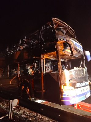Sipas njoftimit nga autoritetet, nuk ka të lënduar, pasi të gjithë pasagjerët janë larguar në kohë nga automjeti, teksa autobusi është përfshirë nga flakët pak minuta pas mesnate.