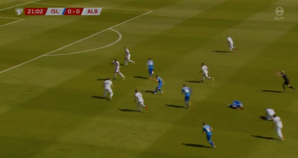 Islanda ka marrë kryesimin që në pjesën e parë me golin e shënuar nga Gudmundsson në minutën e 22′.