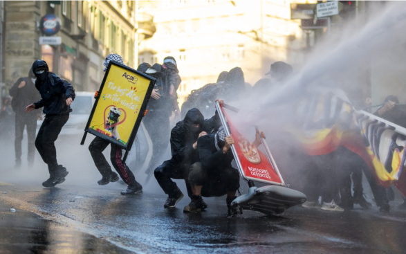 Marshimi pro-palestinez përfundoi me tensione të larta dhe përleshje midis pjesëmarrësve dhe forcave të rendit. Pamjet nga vendngjarja tregojnë policinë zvicerane të trazirave duke përdorur ujë me presion për të shpërndarë turmën.