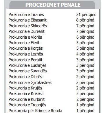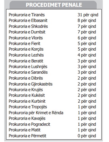 Në rrethet me numër më të ulët të çështjeve të regjistruara, përveç rastit të Përmetit, janë Prokuroritë e Pukës, Pogradecit, Matit, Kavajës e Tropojës, me nga 1 për qind, shkruan panorama.al.