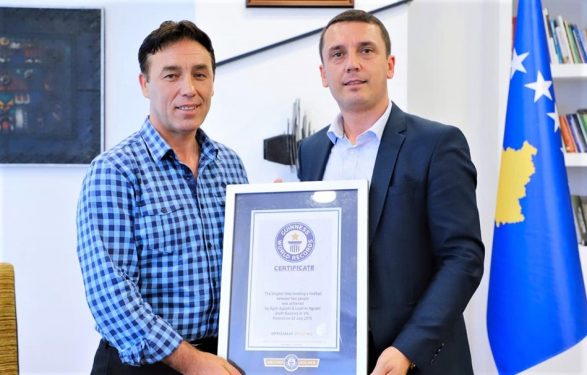 “MKRS-ja do ta mbështesë këtë talent të rrallë në synimin e tij kryesor që është të vendosë rekordin më të vështirë Guinness në ndërtesën më të lartë në botë Burj Al Khalifa në Dubai, duke ecur lart-posht shkallëve të kësaj ndërtese me top në kokë, pa ndërprerje, gjë që nuk është arritur deri më tani”, ka shkruar ministri Gashi.