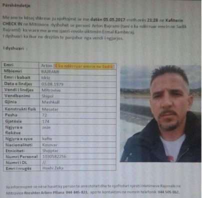 Ndryshe, Policia është vënë në kërkim të tij që nga dje, pasi i njëjti është i dyshuar si dorasi i vrasjes së E.K, që ndodhi ditën e premte në Mitrovicë. Policia akoma nuk është rënë në gjurmë të tij, por njoftohet se janë duke u zhvilluar kërkime dhe hetime intensive. Ndërsa në mediat lokale, i dyshuari për vrasje, tha se nuk është autor i krimit.