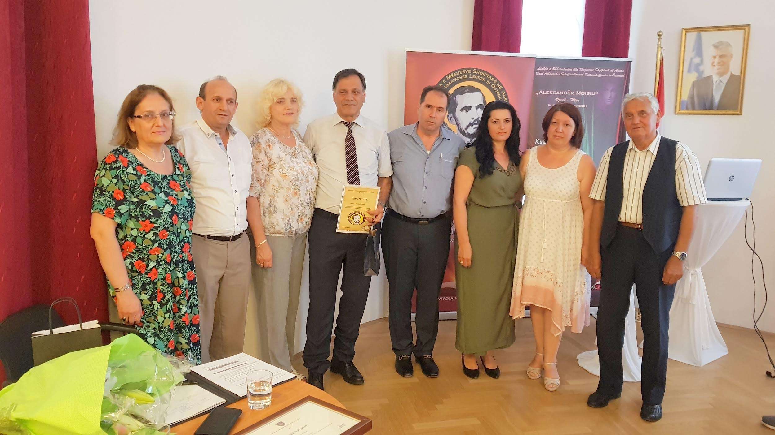Për monografinë “Krijues në diasporë – Hazir Mehmeti”, foli shkrimtari Besim Xhelili. Ai në fillim theksoi se autori i kësaj monografie Prof. Dr. Musa Kraja para disa javësh kishte ikur në amshim, dhe me këtë rast i shprehu z. Hazir Mehmeti ngushëllimet e tij. “Filozofi dhe mendimtari i madh romak Seneka thotë se: “Shpesh një njeri në moshë nuk ka asnjë dëshmi të jetëgjatësisë së vet, përveç viteve të tij”. Sigurisht se kjo thënie ka një domethënie të madhe, kur kemi parasysh se z. Musa Kraja para gati dy javësh iku në amshim dhe përveç viteve të tij të jetës si një dëshmi e jetëgjatësisë së tij, ai la pas një punë të madhe krijuese dhe një ndër veprat e tij të fundit, pra monografinë mbi mikun tonë Hazirin. Ne mburemi sot me mikun tonë Hazirin, i cili gjithashtu, nuk ka arritur vetëm me vitet e tij pensionimin, por ka në bagazhin e tij një të kaluar të çmuar, të pasur, të ndërtuar përditë nga pak, në vende dhe në forma të ndryshme. Pra, ai është antiteza e thënies së Senekës, ngase puna e tij flet vetë, ai tashmë 40 e tepër vjet ka derdhur djersën e tij për kombin, kulturën, gjuhën, identitetin tonë, mësimdhënien, dhe prezantimin e këtyre vlerave para austriakëve dhe të tjerëve që jetojnë këtu në Austri.”, u shpreh më tutje z. Xhelili, i cili si kryetar nderi i LSHKSHA “Aleksandër Moisiu”, z. Mehmeti i ndau një mirënjohje në emër kësaj Lidhjeje.