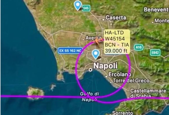 Trajektorja e fluturimit më vonë e tregon atë duke fluturuar në një rreth mbi Napoli përpara se të vazhdojë drejt Tiranës
