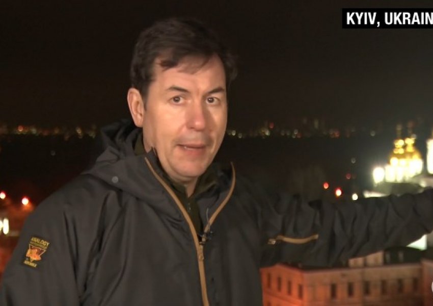 Matthew Chance, gazetar i CNN-it në Kiev, teksa ishte duke bërë një lidhje live, ka ndalon raportimin e tij të drejtpërdrejtë, pasi ka dëgjuar shpërthimin e raketave.