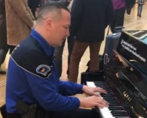 Carl Emery, kështu quhet polici, në mëngjesin e të mërkurës, bëri një shkëputje të vogël nga puna e tij dhe ashtu me uniformën e policit u ul në një piano që ishte vendosur në holin e stacionit