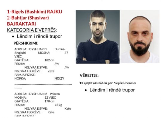 Personat e kërkuar janë: Rigels (Bashkim) RAJKU, i lindur më 27.09.1986 nё Durrёs-Shqipёri dhe Bahtjar (Shasivar) BAJRAKTARI, i lindur më 22.05.1992 nё Samadrexhё-Prizren.