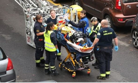 Ndërhyrja e policëve ka ndodhur pasi që ata ishin njoftuar për një zënkë në mes të një çifti në katin e tretë të një ndërtese
