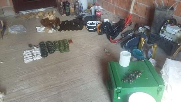 “Një pushkë automatike AK-47, dy M-48, 1 pushkë gjuetie 12 mm, 14 mina befasuese kundër këmbësorisë,13 granata dore e 30 karikatorë të zbrazët”, janë gjetur dhe sekuestruar në shtëpinë e të arrestuarit A.V., thuhet në njoftimin e policisë. I arrestuari është dërguar në mbajtje prej 48 orë.