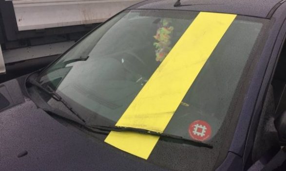 Policia Britanike ndaloi një veturë e cila kishte të vendosur një shirit të verdhë në xhamin e përparmë.