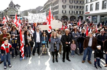 Mbi 200 portugezë kanë protestuar të shtunën në Bernë kundër programeve për kursim të qeverisë së Portugalisë. Planet për kursim prekin para së gjithash mësimin plotësues në gjuhën amtare të fëmijëve portugezë në Zvicër.