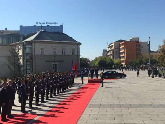 Presidenti shqiptar është pritur me ceremoni shtetërore nga FSK-ja. Meta më pas është takuar me presidentin Thaçi, derisa më vonë do t’iu drejtohen mediave.