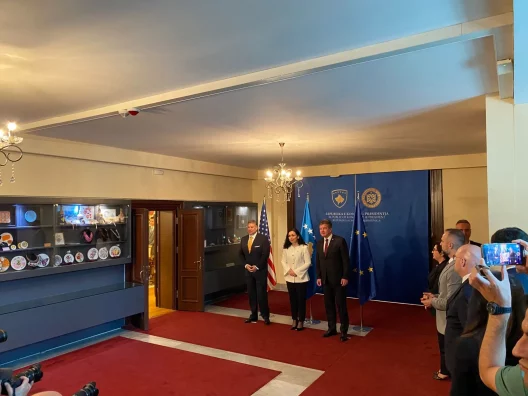 Presidentja e Kosovës, Vjosa Osmani, ka pritur në takim Përfaqësuesin Special të BE-së për Dialogun, Miroslav Lajçak, si dhe të dërguarin e posaçëm për Ballkanin Perëndimor të ShBA-së, Gabriel Escobar, përcjell albinfo.ch.