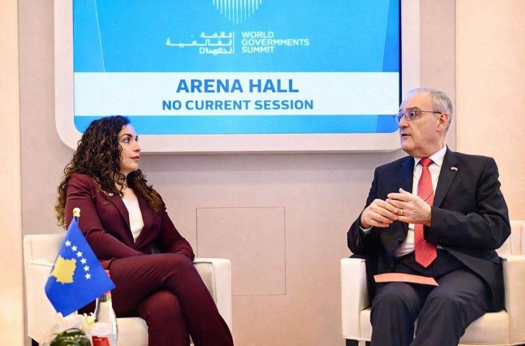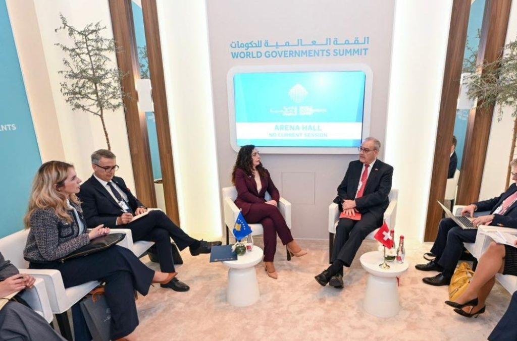 Presidentja e Republikës së Kosovës, Vjosa Osmani, gjatë qëndrimit të saj në Emiratet e Bashkuara Arabe, ka zhvilluar një takim me Presidentin e Zvicrës, Guy Parmelin, në kuadër të Samitit Botëror të Qeverisjes.