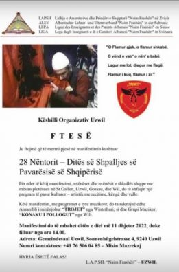 Lidhja e Arsimtarëve dhe Prindërve Shqiptarë “Naim Frashëri” në Zvicër, përkatësisht Këshilli Organizativ Uzwil për nder të 28 Nëntorit, festës së flamurit, do të organizojnë një program artistik.