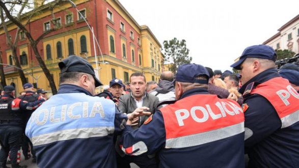 Protesta e opozitës në Tiranë është shoqëruar me tensione. Protestuesit kanë tentuar të çajnë kordonin e policisë të vendosur pranë pedonales dhe Ministrisë së Brendshme të Shqipërisë.