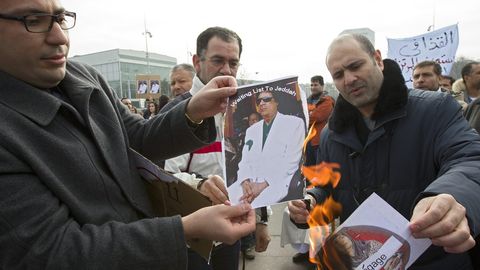 Shumica e protestuesve ishin afrikanë të veriut. Ata bartnin transparente me pamje të demonstruesve të vrarë dhe skandonin parulla që akuzonin Gadafon si diktator.