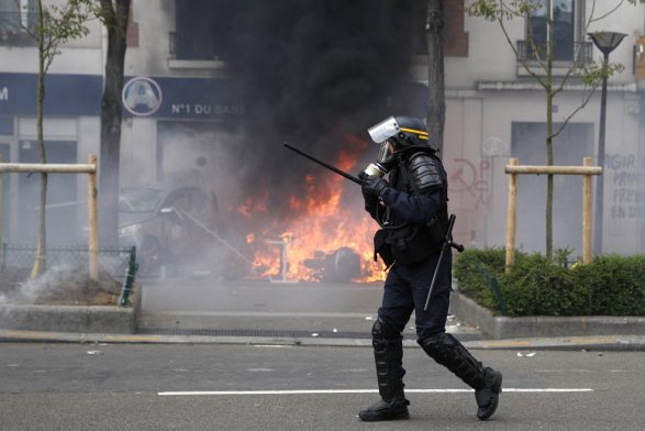 Policia hodhi gaz lotsjellës dhe u përpoq të shpërndajë grupet problematike të anarkistëve. Mediat franceze raportojnë për disa të lënduar nga radhët e protestuesve.