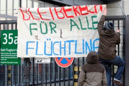 Një protestë e tillë është zhvilluar të martën në Aeroportin e Dyzeldorfit. Siç shkruan NWZonline.de, disa shoqata refugjatësh dhe disa parti të landit Niedersachsen, kanë protestuar sërish kundër dëbimit të romëve në Kosovë. Në një pankartë të madhe ata kanë shkruar: “E drejtë qëndrimi për të gjithë refugjatët”.